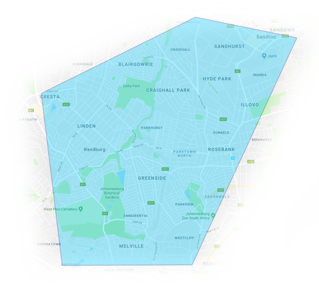 We currently serve the following suburbs in Johannesburg: